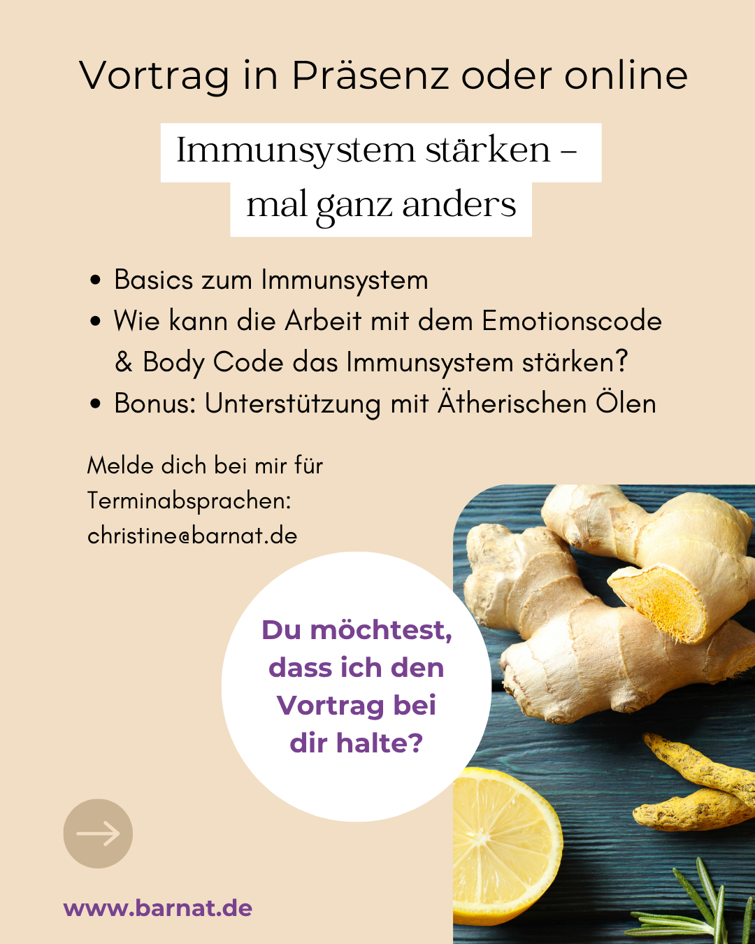 Immer wieder werde ich auf verschiedene Themenschwerpunkte angesprochen und so habe ich mich an die Arbeit gemacht und Wissenswertes zu den Schwerpunkten Lernblockaden und Immunsystem zusammengestellt. Wenn du Lust darauf hast, dass ich dazu einen Vortrag bei dir für eine interessierte Gruppe halte, dann melde ich einfach bei mir. Ich freu mich auf dich! Herzliche Grüße